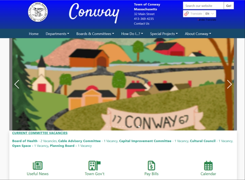 The Town of Conway (37.8 square miles) lies in the foothills of the Berkshires just west of the Connecticut River Valley, a region rich in agriculture, arts & culture. Conway is the 4th largest in area of all towns in Franklin County and is the 11th most populous (1990 census).